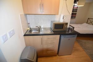 L’hébergement comprend une chambre avec un lit et un futon ainsi qu’un salon équipé d’une télévision écran plat. Le coin cuisine dispose d’une plaque de cuisson, réfrigérateur, micro-ondes, grille-pain, bouilloire électrique ainsi que d’une table à manger et du nécessaire pour préparer vos repas en toute simplicité. Les équipements essentiels incluent le chauffage, une penderie avec espace de rangement pour les vêtements, des oreillers synthétiques anti-plumes, un étendoir à linge et un fer à repasser.