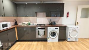 Guests benefit from comprehensive amenities such as complimentary toiletries in the private bathroom fitted with both bathtub and walk-in shower facilities plus hairdryer and conditioner, an iron with ironing board, towels, bed linens, washing machine, tumble dryer for clothes, wardrobe space, heating, hardwood flooring throughout, work desk area as well as clothes drying rack.