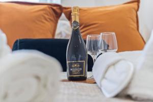 The apartment features two separate bedrooms alongside one bathroom equipped with a bathtub or shower, complimentary toiletries including shampoo and body soap, and a hairdryer. The living room has hardwood parquet flooring with seating that includes a sofa bed and sofa facing a flat-screen TV offering streaming services such as Netflix.