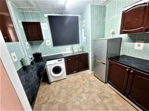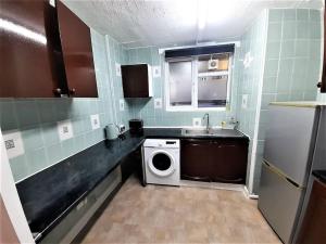 The apartment comprises three bedrooms furnished with four beds in total, alongside one private bathroom for guest use. A fully equipped kitchen allows for cooking and food storage, complemented by a washing machine and heating system to enhance comfort during your stay.