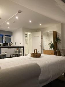 Das Studio verfügt über ein Bett sowie eine voll ausgestattete Küche mit Küchenzeile inklusive Kochutensilien, Herdplatte, Mikrowelle, Kühlschrank, Toaster und Wasserkocher für eine komfortable Zubereitung von Mahlzeiten. Die Unterkunft ist mit Heizung sowie Bügeleisen und Bügelbrett ausgestattet.