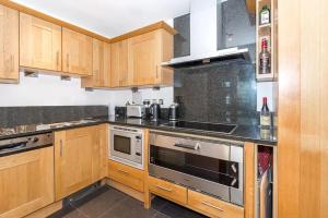 Accommodation features two separate bedrooms with two beds, alongside a living room fitted with a sofa and flat-screen TV offering streaming services such as Netflix. The fully equipped kitchen includes an oven, microwave, refrigerator, dishwasher, toaster, coffee machine and electric kettle. Two bathrooms provide baths along with hairdryers and toiletries including shampoo, conditioner and body soap.