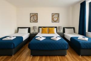 This large apartment includes one separate bedroom, two bathrooms equipped with showers and hairdryers, as well as a living room furnished with a sofa, sofa bed, flat-screen TV, heating, and air conditioning. Guests will find ironing facilities including an iron and ironing board, a wardrobe or closet for storage, towels and bed linen provided for convenience, plus safety deposit box amenities.