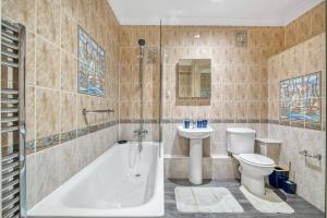 Guests benefit from three bathrooms fitted with bathtubs or showers as well as toiletries like body soap, shampoo and conditioner plus hairdryers in each private bathroom area. Additional comforts include heating facilities, iron with ironing board, washing machine, clothes drying rack, baby cot/crib availability, seating areas, wardrobe space, smoke detectors, carbon monoxide detector, upper floors accessible by stairs only.