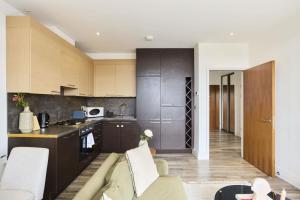 Guests can prepare meals in the full kitchen featuring a refrigerator, dishwasher, microwave and dining table along with a tumble dryer for clothes care. Entertainment needs are met by a television and free WiFi available throughout all areas of the apartment. Safety equipment includes an in-room fire extinguisher.