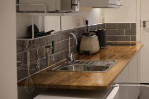 Uvnitř studia najdou hosté jednu postel spolu s pohovkou, topení a pracovním stolem pro pohodlí i praktičnost. Plně vybavený kuchyňský kout obsahuje varnou desku, lednici, mikrovlnnou troubu, toustovač i kuchyňské nádobí a elektrický rychlovarný hrnek pro snadné přípravy jídel. K obývacímu prostoru patří televizor s plochou obrazovkou, ručníky, povlečení i žehlička jsou k dispozici.