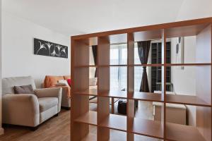 The apartment features one bedroom with two beds and includes a bathroom fitted with a bathtub and hairdryer for added comfort. Guests can enjoy cooking meals in the full kitchen equipped with an oven, stovetop, microwave, refrigerator, electric kettle as well as all necessary kitchenware. Additional conveniences include heating, towels and bed linen along with ironing facilities consisting of an iron and ironing board.