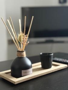 Une cuisine entièrement équipée propose des installations modernes comprenant four, plaque chauffante micro-ondes combinée, réfrigérateur ainsi que vaisselle et ustensiles. Un coin cuisine permet également la préparation du thé ou café grâce à une bouilloire électrique et un grille-pain. Le repas peut être pris autour de la table située dans l’appartement. Parmi les autres prestations figurent le Wi-Fi gratuit disponible partout ainsi que des prises près du lit pour plus de commodité. Le stationnement s’effectue dans la rue avec places accessibles , les dispositifs sécuritaires incluent détecteurs de fumée et extincteurs.