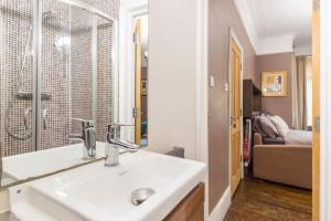 Inside the apartment guests will find one bedroom furnished with a sofa bed and feather pillows along with non-feather synthetic alternatives for comfort. The accommodation offers hardwood flooring throughout and includes an iron with ironing board plus heating facilities to ensure convenience during your stay. There is also a seating area by the fireplace alongside a work desk for added functionality.