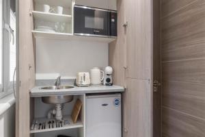 Modern Studio provides amenities such as heating, wardrobe space and seating area plus non-feather pillows alongside feather options for comfort. An iron with ironing board is available together with towels and bed linen supplied in this non-smoking unit. Entertainment includes a flat-screen TV offering streaming services accessed via bedside sockets while free WiFi covers all areas.