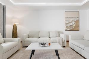 Inside the apartment guests will find three beds including sofa bed options and baby cots or cribs available for families. The fully equipped kitchen includes a stovetop, oven, dishwasher, refrigerator as well as a microwave, toaster, coffee machine and electric kettle with tea and coffee making facilities alongside a dining table with seating area. Two bathrooms come with bathtubs or showers plus bidets, complimentary toiletries such as body soap shampoo conditioner are provided along with bathrobes and hairdryers for convenience.