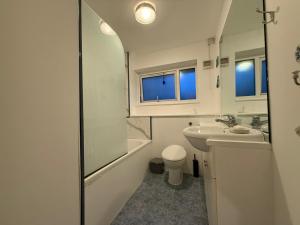 Accommodation features three separate bedrooms with five beds in total alongside a living room equipped with a sofa bed and flat-screen TV for entertainment. The fully fitted kitchen includes a stovetop, oven, microwave, toaster, electric kettle as well as dining table facilitating meal preparation and dining experiences within the unit.