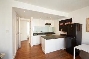 Inside the apartment you will find one bed along with heating to keep you warm during cooler days. The fully equipped kitchen includes a refrigerator, tumble dryer for clothes, tea and coffee making facilities as well as all necessary cookware to prepare your meals conveniently in-house. Additional amenities include an iron, washing machine and work desk to accommodate both relaxation and productivity needs.