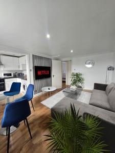 Each apartment features parquet flooring throughout and comprises one bedroom with either two or three beds per unit, along with one private bathroom that includes complimentary toiletries and a bathtub. Guests will find seating areas with flat-screen TVs offering streaming services, wardrobes, washing machines, ironing facilities including an iron and board, heating, non-feather pillows, sofas or sofa beds where applicable, rollaway beds available as extra options, clothes drying racks, towels and bed linens.