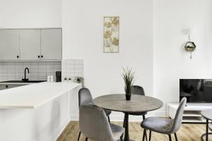 This one-bedroom apartment features a living room with a television and a fully equipped kitchen that includes an oven, microwave, refrigerator, coffee machine, electric kettle, toaster as well as full kitchenware for dining needs. Guests will also find heating facilities throughout the unit along with a wardrobe or closet, ironing facilities including an iron and ironing board, clothes drying rack, washing machine, tumble dryer for clothes, tea and coffee making equipment, plus baby cot/crib availability.
