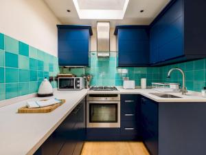 The fully equipped kitchen offers an oven, stovetop, microwave toaster refrigerator electric kettle as well as tea and coffee making facilities to prepare meals at leisure. Safety measures include smoke detectors carbon monoxide detectors and fire extinguishers inside the apartment.
