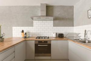 Accommodation features two separate bedrooms, a living room with sofa and seating area, as well as a fully equipped kitchen fitted with an oven, stovetop, dishwasher, microwave and coffee machine among other amenities. The bathroom includes a walk-in shower without steps and a bathtub along with complimentary toiletries such as shampoo and conditioner. Guests will appreciate extras like soundproofed rooms, ironing facilities including iron and board, towels, bed linen, wardrobe closet space and hardwood flooring.