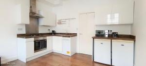 Guests can enjoy an extensive kitchen equipped with an oven, stovetop, dishwasher, refrigerator, microwave, toaster, electric kettle and all necessary kitchenware plus tea and coffee making facilities alongside a dining table for meals. Additional amenities include heating, ironing facilities with iron and board, washing machine, work desk and wardrobe.