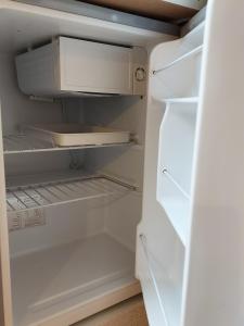 Inside the apartment you will find one bedroom along with a living room featuring hardwood flooring and seating area. The kitchenette comes complete with kitchenware including a stovetop, microwave, refrigerator, electric kettle as well as a dining table for convenience. The bathroom contains complimentary toiletries such as shampoo and body soap plus essentials like a hairdryer and shower.