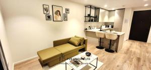 The apartment features one bedroom with two beds and a private bathroom equipped with both a bathtub and shower as well as complimentary toiletries including shampoo, conditioner, body soap, slippers, and a hairdryer. The fully equipped kitchen comes complete with an oven, stovetop, refrigerator, dishwasher, microwave, coffee machine, electric kettle,toaster,tumble dryer,kitchenware,and tea and coffee making facilities.Air conditioning extends throughout the unit which also includes bed linen,towels,a work desk,washing machine,a wardrobe,and ironing facilities such as an iron and ironing board.