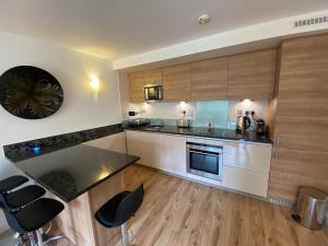 Guests benefit from lift access to the apartment along with smoke detectors for safety measures, it is fully wheelchair accessible. The kitchen area boasts full kitchen facilities such as an oven, stovetop, refrigerator, microwave, toaster coffee machine and electric kettle accompanied by tea and coffee making supplies as well as complete kitchenware.
