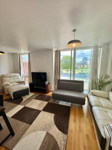 Featuring garden and river views, Spacious & Serene 2 Bed, Sleeps 6 With Canal View And Underground Parking is an apartment located in London approximately 2.5 km from Canary Wharf Underground Station. This one-room property includes a patio and a balcony, complemented by free private parking and complimentary WiFi throughout.