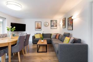 Accommodation comprises one living room, three separate bedrooms and three bathrooms featuring bathtubs with complimentary toiletries. The fully equipped kitchen contains an oven, dishwasher, refrigerator, microwave, toaster as well as tea and coffee making facilities alongside kitchenware. Additional room amenities include bed linen, towels, heating, ironing facilities with iron and board, wardrobe or closet space, clothes drying rack and hardwood flooring.