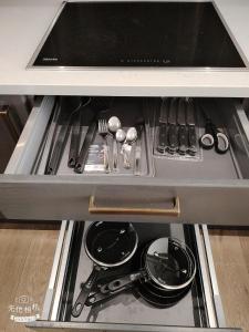 Tento prostorný byt zahrnuje jednu samostatnou ložnici a dvě koupelny vybavené vanou, sprchou, bidetem, bezplatnými toaletními potřebami včetně šamponu a tělového mýdla, župany i fénem na vlasy. Plně vybavená kuchyň disponuje troubou, mikrovlnnou troubou, lednicí, kuchyňským nádobím a jídelním stolem pro všechny potřeby vaření, k dispozici je také pračka a sušička na prádlo.