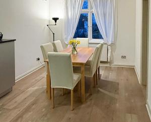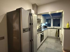 The fully equipped kitchen boasts modern appliances including a stovetop, oven, dishwasher, refrigerator, microwave toaster coffee machine electric kettle tumble dryer and all necessary kitchenware complemented by a dining table where meals can be enjoyed together comfortably indoors. Entertainment comes via a flat-screen TV offering streaming services alongside bedside sockets for device charging needs, internet access is available throughout the apartment via free WiFi coverage ensuring connectivity during your stay.The property supports private check-in/check-out procedures along with safety features like smoke detectors and carbon monoxide detectors.Street parking is available nearby facilitating easy access while guests may enjoy activities such as cycling or visiting golf courses within three kilometers.