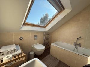 Accommodation consists of three bedrooms accompanied by two bathrooms featuring both baths and showers for convenience and privacy. The living space includes a seating area as well as hardwood or parquet flooring combined with carpeted areas for added comfort. Guests will find essential amenities such as heating, an iron with ironing board, towels and bed linen provided along with storage options like wardrobes or closets.