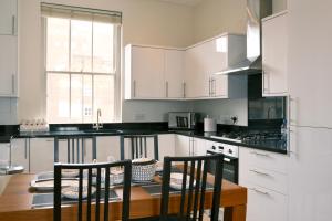 The fully equipped kitchen contains modern appliances like stovetop, oven, refrigerator dishwasher microwave coffee machine toaster electric kettle tea and coffee making facilities along with all necessary kitchenware complemented by a dining table indoors plus outdoor furniture on the balcony or patio for alfresco meals. Entertainment options include free WiFi throughout the apartment streaming services via flat-screen TV cable satellite channels internet access bedside sockets are provided for convenience while parking availability enhances guest accessibility.
