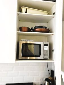 Das Studio verfügt über ein Schlafzimmer mit einem Bett sowie ein eigenes Badezimmer mit Dusche und Haartrockner. Zur Ausstattung gehört eine voll ausgestattete Kochnische mit Wasserkocher, Mikrowelle, Herdplatte und Kühlschrank sowie ein Esstisch für Mahlzeiten im Innenbereich. Weitere Annehmlichkeiten sind Heizung, Kleiderschrank oder Schrankraum, Bügelbrett und Bügeleisen sowie Bettwäsche und Handtücher. Ein Sitzbereich mit Arbeitstisch rundet die Einrichtung ab.
