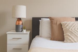 The fully equipped kitchen boasts modern appliances including an oven, stovetop, refrigerator, dishwasher and microwave as well as essential kitchenware and dining table space. Additional conveniences include satellite flat-screen TV with streaming services access, washing machine availability for laundry needs and safety features such as smoke detectors alongside lift access.