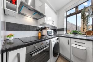 Accommodation features include a flat-screen TV with streaming services, a washing machine, an iron with ironing board, heating facilities, a work desk and wardrobe space alongside sofa seating that converts into an additional bed. The bathroom provides complimentary toiletries including shampoo and conditioner as well as both shower and bathtub options with hairdryer available.