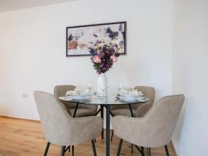 The accommodation comprises two separate bedrooms and a living room equipped with a TV offering streaming services. The fully fitted kitchen includes an oven, dishwasher, refrigerator, electric kettle, tea and coffee making facilities as well as kitchenware and a dining table for your convenience. Two bathrooms feature hairdryers, complimentary toiletries including shampoo and conditioner.
