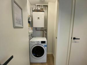 The accommodation features two bedrooms with hardwood or parquet flooring as well as carpeted areas. Guests will find a fully equipped kitchen boasting a stovetop, oven, microwave, toaster, dishwasher, refrigerator, electric kettle and complete kitchenware alongside a dining table. The living area includes a TV with streaming services plus seating for relaxation. Additional amenities comprise ironing facilities including iron and ironing board, washing machine, towels and bed linen.