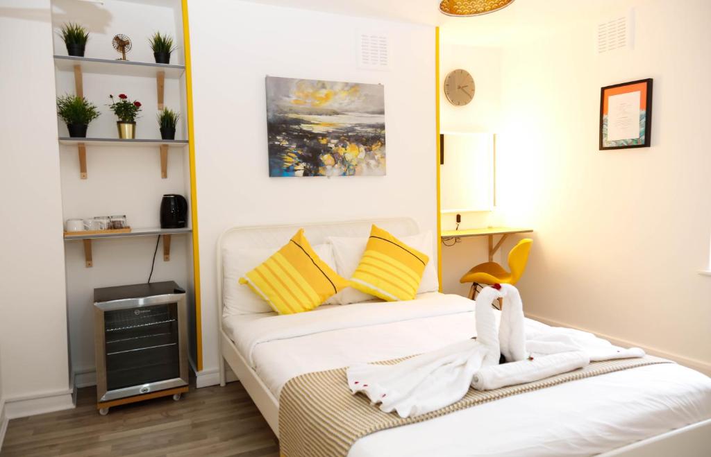 Vybavení ubytování Stylish Rooms 1-Minute Walk to Camden Town Metro, Shops, Cafes, Bars & Restaurants with Shared Bathrooms zahrnuje také lednici a varnou konvici.