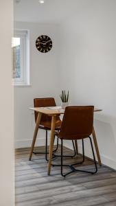 Guests have access to a fully equipped kitchen boasting kitchenware including stovetop appliances, refrigerator, coffee machine, toaster as well as tea and coffee making facilities alongside an electric kettle. A dining table enhances mealtime convenience within the unit which also offers ironing facilities including iron and ironing board plus towels and bed linen provided for added ease.