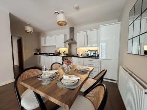 Accommodation comprises two separate bedrooms along with one living room and two bathrooms equipped with bathtubs and complimentary toiletries such as shampoo and conditioner. The fully equipped kitchen boasts modern appliances including an oven, stovetop, microwave, dishwasher, refrigerator as well as tea and coffee making facilities. Additional in-room amenities include a washing machine, heating system, ironing facilities with iron and ironing board, towels, bed linen and wardrobe space.