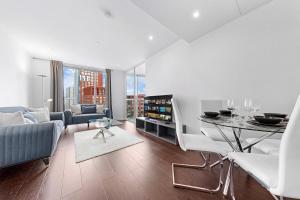 Apartmán 18. patro Luxury 2 ložnice, 2 koupelny Sky View s přístupem na střechu a fitness centrem! Nepřekonatelný zážitek a mimořádná hodnota! se nachází v Londýně, pouhých 2,4 km od Westminsterského opatství a vlakového nádraží Victoria. Tento jednopokojový objekt nabízí přístup na střechu a terasu s výhledem na město.