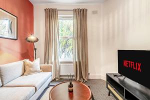 Accommodation features a fully equipped kitchen complete with an oven, stovetop, refrigerator, microwave and toaster alongside kitchenware and a dining table for meal preparation and enjoyment. The apartment also includes heating facilities, an iron, washing machine and offers access to a flat-screen TV as well as a baby cot/crib.