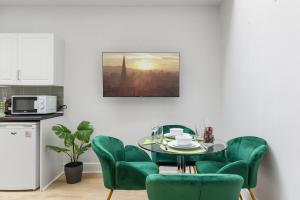 This single-bedroom apartment features a fully equipped kitchen with an oven, stovetop, dishwasher, refrigerator, microwave, toaster, coffee machine as well as tea and coffee making facilities. The bathroom includes a bathtub with shower options, bidet, complimentary toiletries such as shampoo and conditioner, bathrobe and slippers for added comfort.