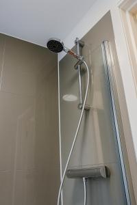 The bathroom includes both bathtub and shower options with complimentary shampoo, conditioner and body soap provided plus hairdryer facilities available for convenience. Additional amenities include an iron with ironing board, clothes drying rack towels alarm clock wardrobe heating flat-screen TV with streaming services WiFi throughout washing machine street parking availability ground floor location parking access and free internet connection.