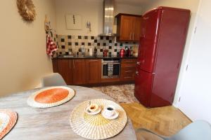 Inside the apartment, guests will find a fully equipped kitchen complete with a stovetop, oven, microwave, refrigerator, dishwasher, toaster, electric kettle, kitchenware and dining table for convenient meal preparation and enjoyment. The living area features hardwood flooring and includes a seating area with a flat-screen TV as well as a work desk for added comfort.