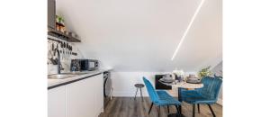 Tento zvukotěsný studio má jednu ložnici s postelí a rozkládacím gaučem, dále posezení a pracovní stůl. Plně vybavená kuchyňský kout zahrnuje nádobí, troubu, varnou desku, ledničku, mikrovlnnou troubu, toustovač, kávovar i elektrickou konvici spolu s možností přípravy čaje a kávy a jídelním stolem.