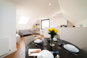 This two-bedroom apartment features two bathrooms equipped with baths and complimentary toiletries for added comfort. Guests will find a fully equipped kitchen boasting an oven, stovetop, refrigerator, dishwasher, microwave, toaster, coffee machine and electric kettle along with complete kitchenware for meal preparation. Additional room amenities include a flat-screen TV with streaming services such as Netflix, a work desk, ironing facilities including iron and board, washing machine, sofa bed and baby cot or crib as needed.