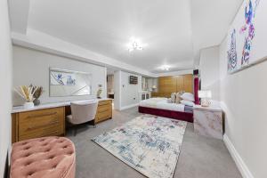 Ubytování zahrnuje dvě ložnice a dvě koupelny vybavené bezplatnými toaletními potřebami, vanou i sprchovým koutem a také vířivkou přímo v pokoji pro větší relaxaci. Interiér nabízí zvukotěsné pokoje, šatní skříň, žehlicí potřeby včetně žehličky s prknem, povlečení na postele, ručníky, šatnu i posezení na podlahách z tvrdého dřeva nebo parket.