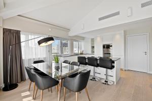 Cada apartamento cuenta con uno a tres dormitorios con camas acorde al tamaño del apartamento, baño privado con ducha y lavadora para mayor confort. Las cocinas incluyen frigorífico, vitrocerámica, lavavajillas, horno, microondas, cafetera, hervidor eléctrico y un completo juego de utensilios de cocina. Entre los servicios adicionales en la habitación destacan plancha con tabla para planchar, almohadas sintéticas (sin plumas), tendedero para ropa, caja fuerte para objetos personales así como toallas y ropa de cama.