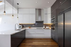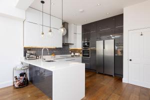 El alojamiento dispone de tres camas distribuidas en los dormitorios y dos baños privados equipados con bañera o ducha y artículos gratuitos de aseo personal. La cocina americana completamente equipada incluye horno, lavavajillas, frigorífico, microondas, tostadora y hervidor eléctrico junto con utensilios para preparar té y café, además cuenta con una mesa comedor para mayor comodidad durante las comidas. Entre otras comodidades destacan la calefacción, toallas para el confort del huésped, un área para sentarse donde relajarse, plancha, armario.
