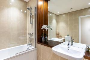 This spacious apartment features two bedrooms with two beds, along with two bathrooms equipped with showers and hairdryers for added comfort. The fully equipped kitchen contains an oven, stovetop, refrigerator, dishwasher, microwave, toaster, coffee machine, electric kettle as well as all necessary kitchenware to prepare meals easily during your stay.